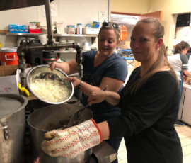 We want to give a special thank you to all who volunteered to cook a delicious meal for the people in your community. The event was smooth and successful, breakfast and dinner was hearty and delicious, and there were smiles and laughter left and right. Over 100 people were fed between the two meals. We want to give a huge shout out to the amazing individuals that made this happen:
