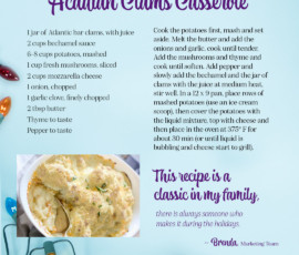 - Acadian Clams Casserole – Brenda Comeau