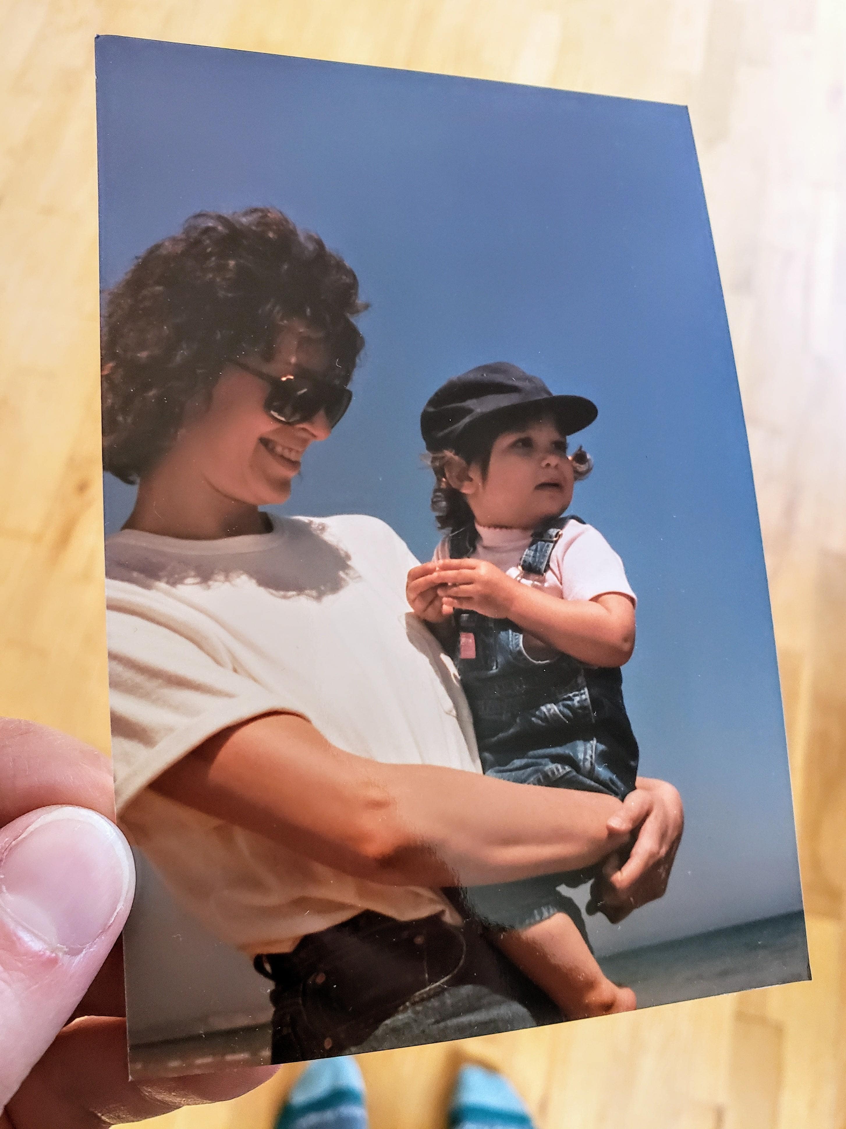 “Here's one I keep within eyesight of my desk. She's about my age here and we're at the beach on Cape Cod, where we'd spend time every summer when I was little. She passed away when I was 21, and Mother's Day is still rough, but I try to keep her spirit alive with my memories of her and by how I think about her when I look at photos like this. She was such a loving, fun, and funny person and I miss her every day.”