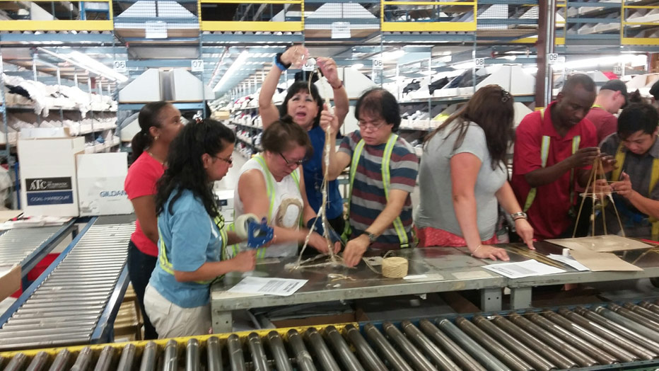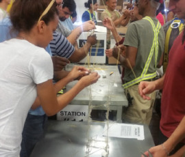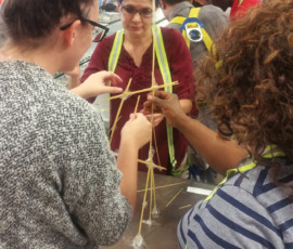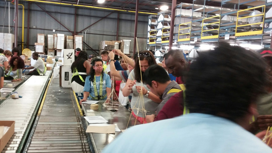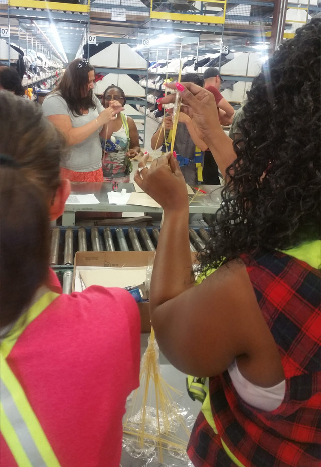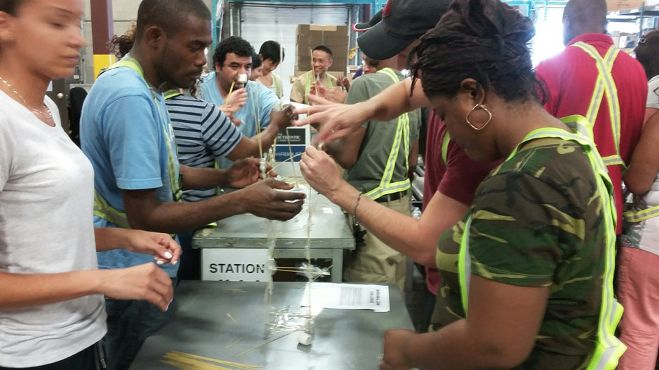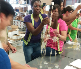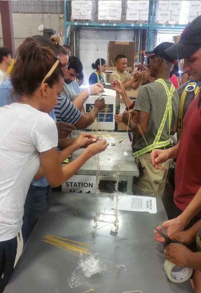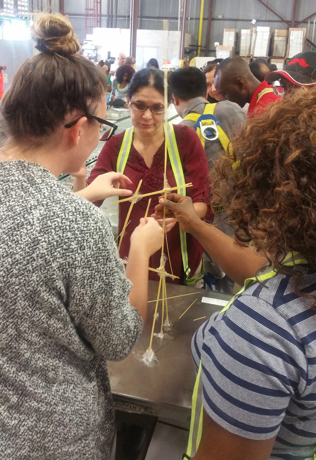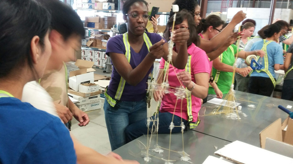 In small groups, teams were challenged to build the tallest structure possible using only the following items:
