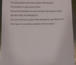 The description and aisle numbers were given and they had to record the location on a product description sheet and they were not allowed to use PICK!