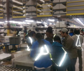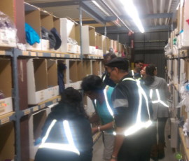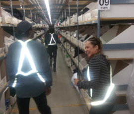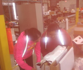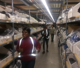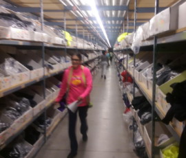 Each team raced through the low-bay aisles, searching for the correct location for the product listed on their task list.