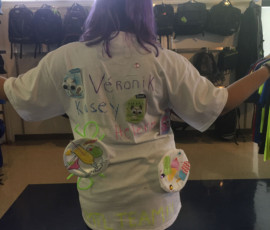 - Team “KSASS” featured a cut and knotted bottom accent with lots of colourful cups and dots. With a purse, feathered cap and drink in hand, this shirt was all PARTY, PARTY, and PARTY!