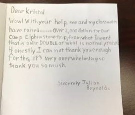 June 12, 2018 at 10:20 amThank you everyone who came out to support Julian and his classmates. They’re leaving for camp tomorrow and are all very excited 🙂