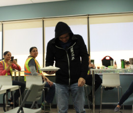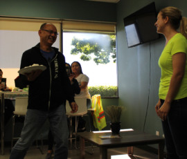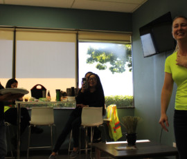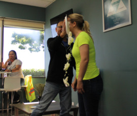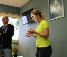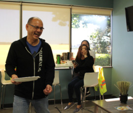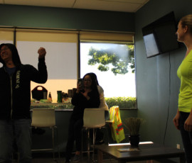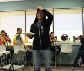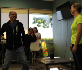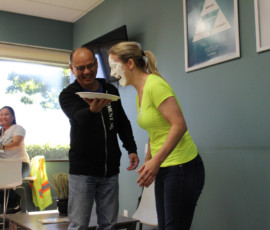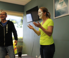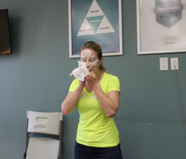 Who doesn’t love watching a great punishment unfold? I do! Our beloved Cherilyn Tournier from the Vancouver team got the unfortunate privilege of getting a pie to the face! Everyone, including Cherilyn, had a great time and a lot of laughs; and Charles Chang may have been enjoying his pie throwing duties a little too much… It was for charity, I swear. Check out the pictures of the punishment below, I may have even made a GIF for it.